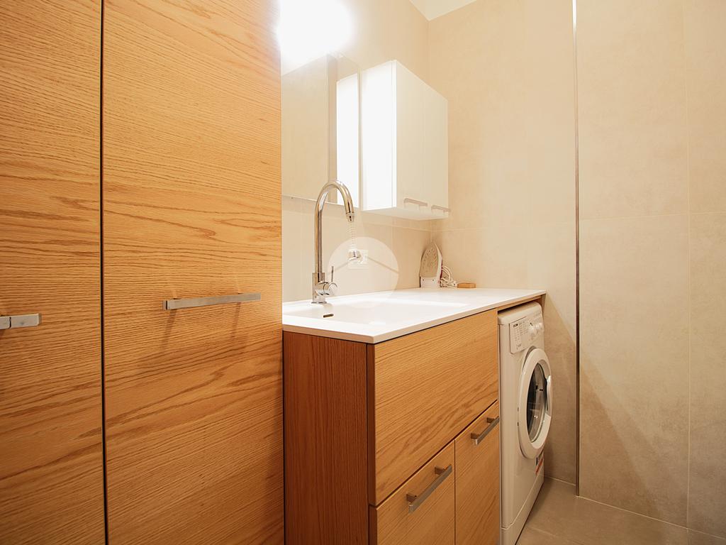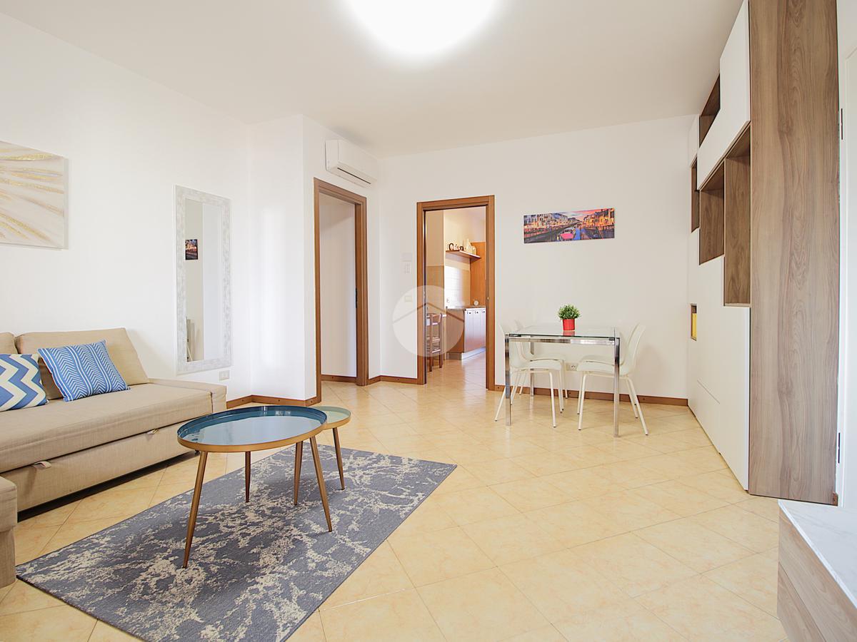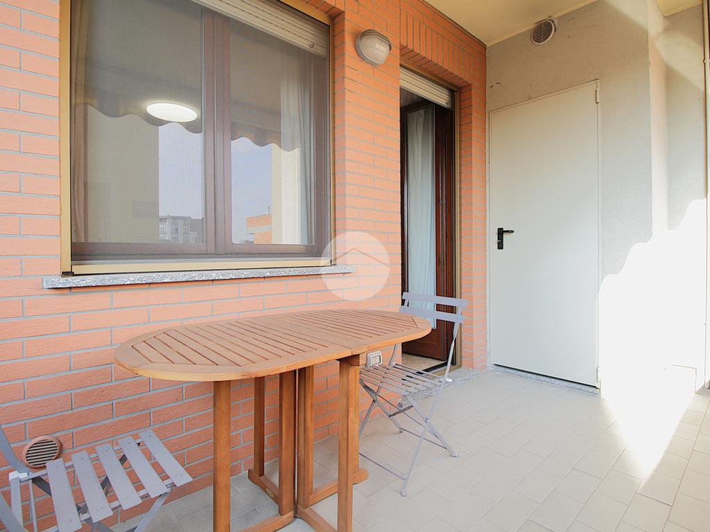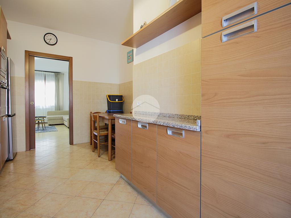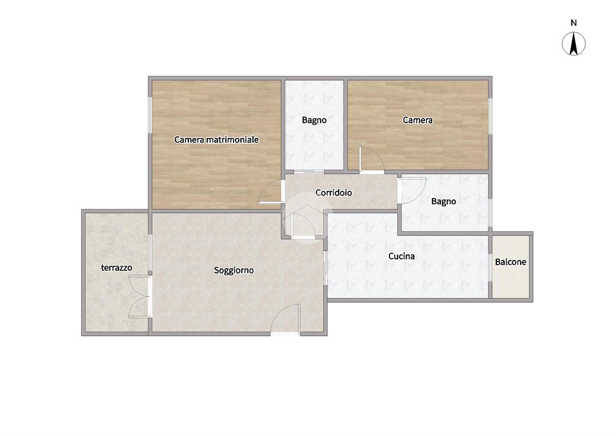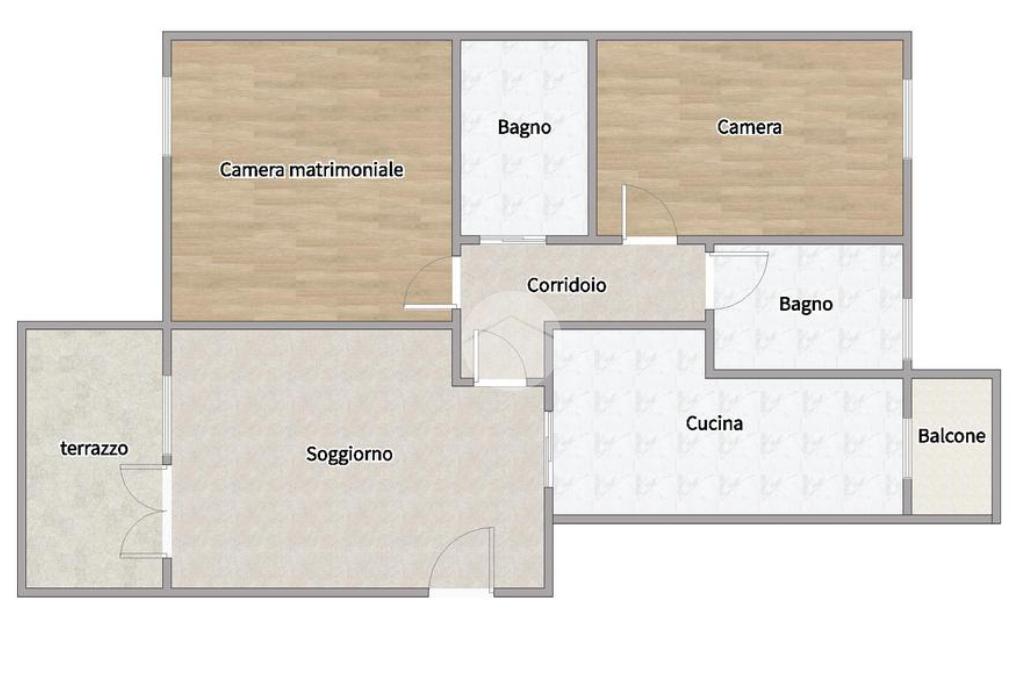 L'appartamento è composto da ingresso su un ampio soggiorno con accesso al terrazzo, cucina abitabile con balcone, camera matrimoniale, cameretta e due bagni (ristrutturati) di cui uno finestrato.